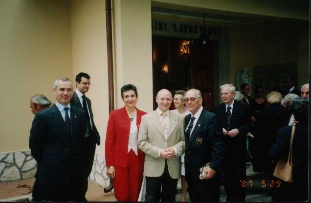 Un gruppetto che mette in evidenza i nostri amici esuli : il primo a destra è l'ing. Becocci ( il lungo del Corso ) con moglie , che vive in Brasile - il secondo l'ing: Eugeni con moglie ( vestito rosso ) che vive in Canada.